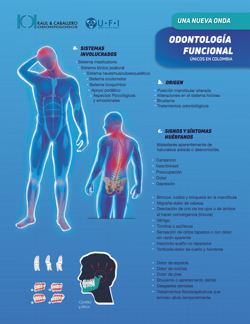 Funcional: Buscamos el buen funcionamiento del sistema masticatorio en armonía con el sistema vertebral, desde el cuello hasta los miembros inferiores del cuerpo